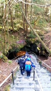 富岳風穴に入りました。ここは夏でも天然の冷蔵庫です。冬でもあまり変わらず3℃前後の気温だそうです。これからバスで氷穴に向かいます。