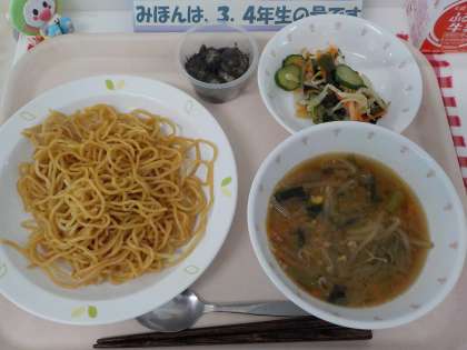 本日の給食は、みそラーメン・わかめサラダ・白玉ごまだんご・牛乳です。