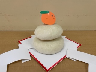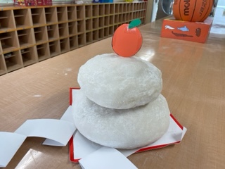 もちつき大会で子どもたちがついた鏡餅にみかんが載りました!