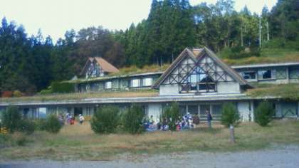 宿舎に着きました。いよいよこれから二泊三日の移動教室が、始まります。自然に囲まれた宿舎。バッタやキリギリスに歓声をあげています。