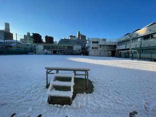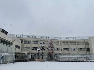 今朝は朝から教職員総出で学校内外の除雪作業です。校庭も除雪をし、できるだけ早く使用再開できるようにしました。(3枚目)