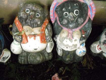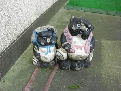 大きいタヌキと小さいタヌキが横に並んでいて親子に見えたのでこの題名にしました。