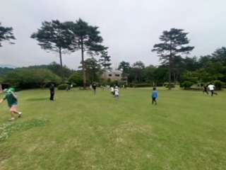 恩賜林庭園では、大きな遊具で遊んだ後、広場で交流遊びをしました。