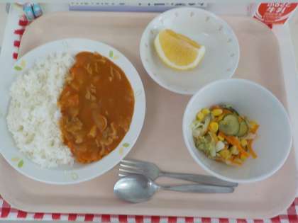 本日の給食は、ハッシュドポークライス・コーンいりサラダ・河内晩柑・牛乳です。
