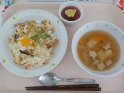 本日の給食は、ちらしずし・七夕汁・ゼリー・牛乳です。
