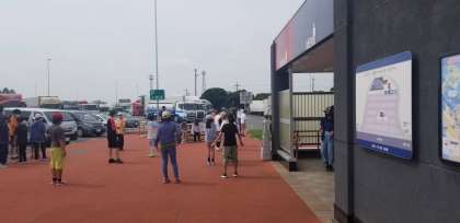 羽生パーキングエリアに到着しました。外の空気を吸ってリフレッシュしています。