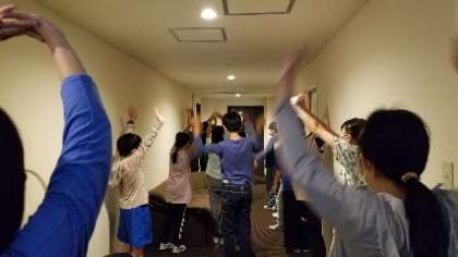 今朝は、朝から雨が降っているため、室内での朝の会となりました。軽いストレッチをしました。みんな元気です。