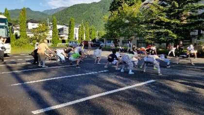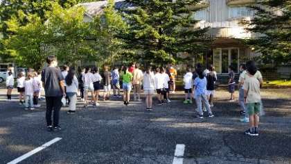 昨晩は、激しい雨でしたが、今朝、清々しい朝をむかえました。朝の会を外で行いました。体操は、ソーラン節を行いました。みんな、元気です。