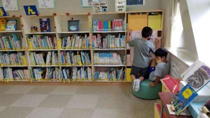 図書室の使い方を学びました。読みたい本を選び、集中して読んでいます。