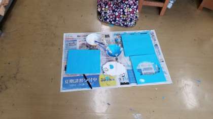 11月11日、12日に行う展覧会に出品する作品を制作しています。電動いとのこぎりを使い細かい部分を切り落としています。色を塗り、組み立てていきます。