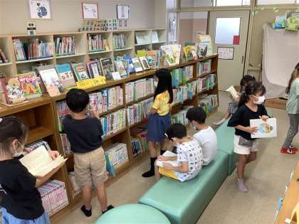 図鑑や絵本など、図書室にあるたくさんの本の中から自分の読みたい本を選び、読書を楽しんでいます。