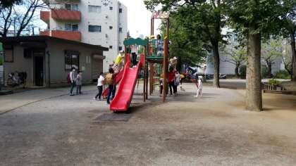 公園の遊具で、楽しく遊んでいます。