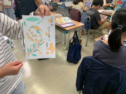 国語「秋の楽しみ」で絵手紙を書きました。秋を感じさせる絵に俳句、詩、手紙をしたためた素敵な作品に仕上がりました。