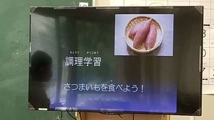 今日、掘ってきたさつまいもを調理します。茶巾絞りを作ります。身支度、調理器具を確認しました。
