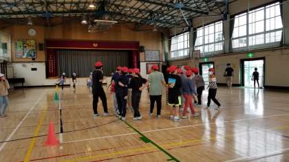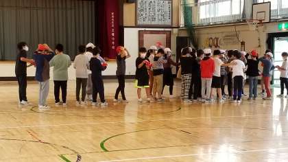 雨のため、校庭がつかえないので、体育館での元気いっぱいなボールゲームでした。