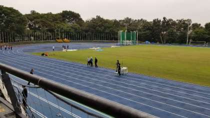 砧公園にある競技場は、広くて大きいです。