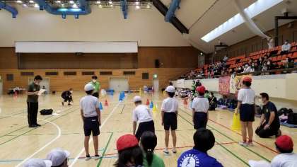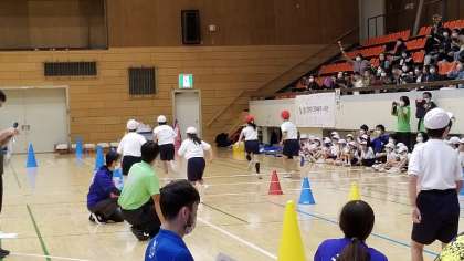 4年生、5年生が、6年生が、参加する「のこえやまこえ」です。障害物を乗り越えていきます。