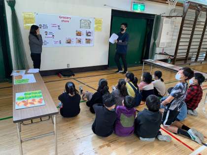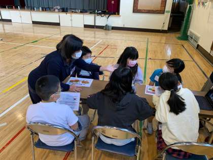 体験活動「ホストファミリーと旅行に行こう!」です。行きたい国やしたいことについて会話に挑戦しました。
