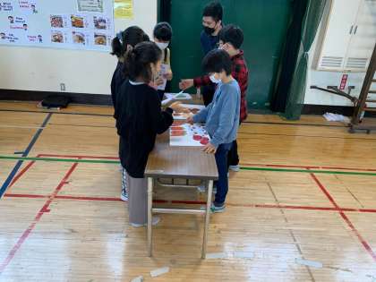 体験活動「ホストファミリーのために買い物をしよう!」です。店員さん役とお客さん役に分かれて会話に挑戦しました。
