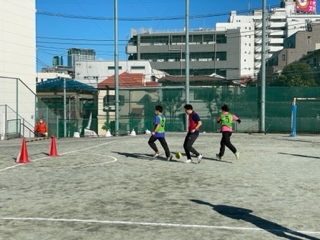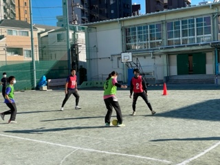 体育のゲーム・ボール運動に関わる授業づくりの研修として、「サイドマンサッカー」に挑戦しました。