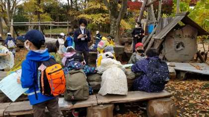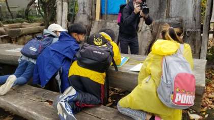 見学したことをしおりにまとめています。集合時間の5分前行動もできています。