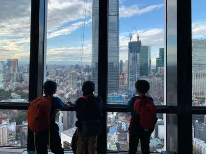 展望台からは、高いビルだけでなく美しい紅葉も見えます。
