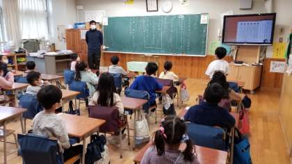 インタビューのやり方の学習です。質問の仕方、相手の答えについて感想の言い方、質問の答え方を学習しています。