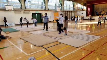 体育館で、新BOPの方々によるけんけんずもうを行っています。
