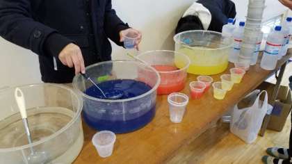 6年生のお店です。スーパーボールを作りました。丸くするのは難しいですね。