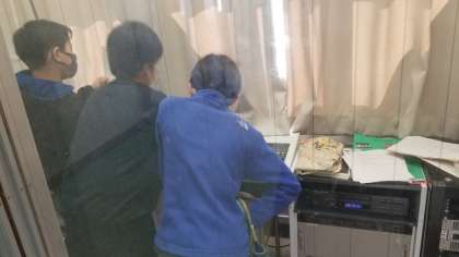 代表委員会の子どもたちが、開会式や閉会式、途中の進行について、放送を使い全校に向けて伝えています。