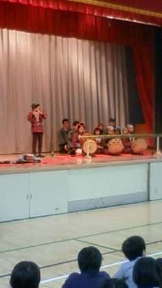 3時間めに、お囃子を鑑賞しました。ひょっとこの踊りや獅子舞いもありました。初めて獅子舞いを見たという子どもたちもいます。獅子のお顔は手作りとのこと。地域の伝統文化を大切にしたいです。