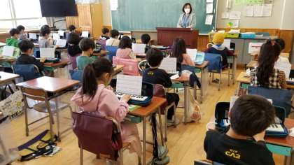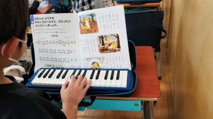鍵盤ハーモニカの演奏の練習です。また、「小ぎつね」の歌の練習も行いました。