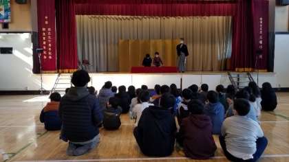 友達の前で、落語の話を伝えました。短い時間での練習でしたが、上手に話すことができました。