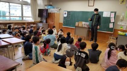 昔あそびの一つであるけん玉で遊んでいます。遊んだことのない子も楽しんでいました。