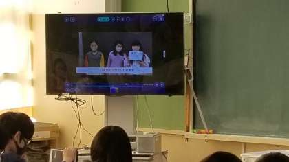 代表委員会の発表を行いました。ユニセフ募金を実施する紹介集会です。