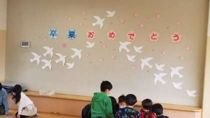 ヒマラヤ広場の壁面にも、6年生の卒業を祝う装飾をしています。