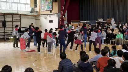 わかば学級は、全校の手拍子に合わせてミッキーマウスマーチに合わせて、ダンスを披露しました。