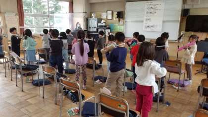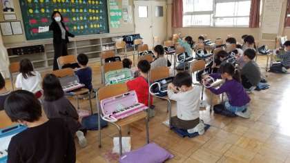 入学式に、歓迎の発表を行います。その練習をしています。鍵盤ハーモニカのきれいな音が、音楽室に響きました。