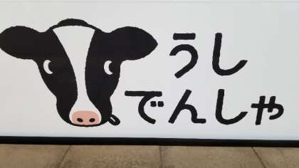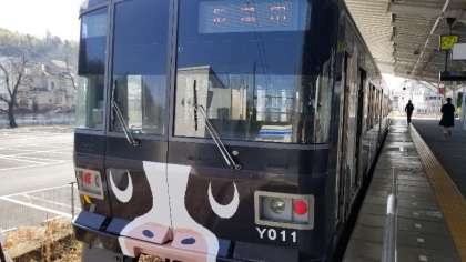 かわいい牛の模様の電車にのりました。
