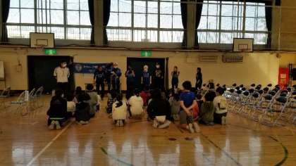 本日、スフィーダ世田谷FCの皆さんに来校していただき、読み聞かせ、ゲーム、ブラインドサッカーを体験させていただきます。