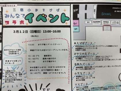 今年度最後の遊び場開放は、三宿小学校に関わる皆さんがコラボしてのイベントです。