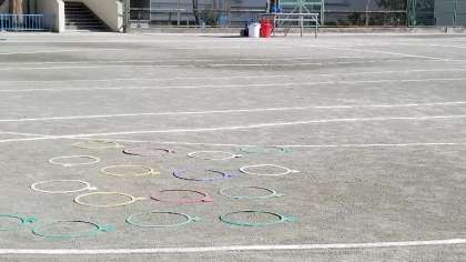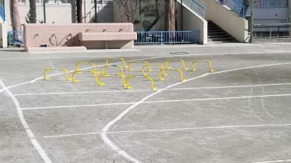 本日、5年生が企画運営するスポーツ大会を行います。朝から準備をしていました。