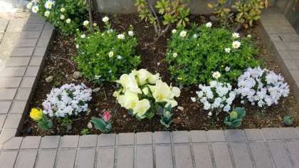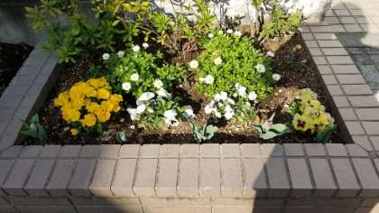 東門前の花壇の花もきれい咲き始めました。
