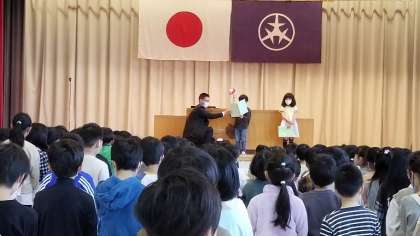 本日、令和5年度修了式をおこないました。1年生の代表が、発表をしました。