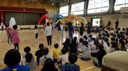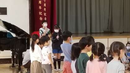 全校が集合して、1年生の入学をお祝いしました。元気いっぱいの会となりました。
