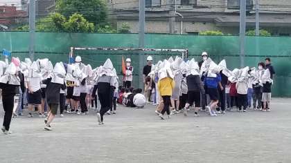 地震を想定して、5月の避難訓練を行いました。先日の千葉県で起きた地震の影響で、23区内は、震度3との報道がありました。