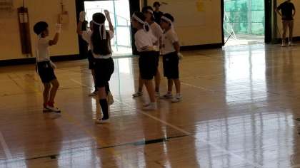 白組の応援練習です。6年生の団長を中心に元気に練習しています。