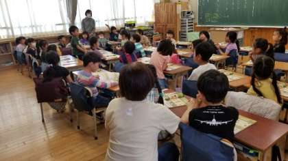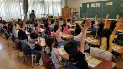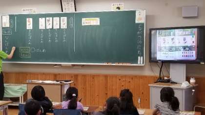 並び方の学習をしています。1年生は、元気に自分の考えを発表しています。今年の1年生は、1クラスですが、日々、担任以外に複数の補助員をつけて、学習、生活の補助を個別でできるようにしています。