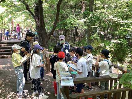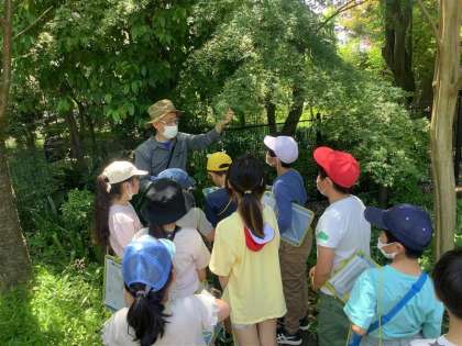 5月17日(水)の3,4時間目に、三宿の森に行きました。「三宿の森を守る会」の方々から昔の三宿の様子についての話を聞いたり、三宿の森に住んでいる生き物を観察したりしました。
