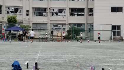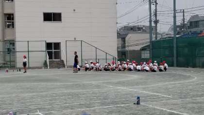 短距離走の練習です。今日は、カーブの走り方を意識しての練習です。